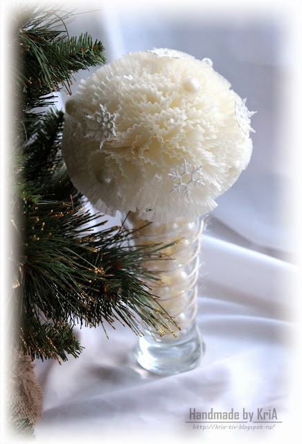 Получилось у меня вот такое новогоднее украшение на стол. Воздушное и легкое.